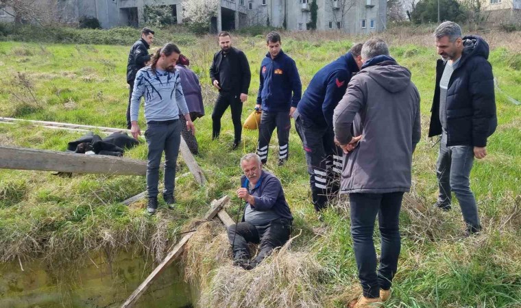 Sinop’ta sulama kanalına düşen köpeği kurtarmaya giden vatandaş boğulma tehlikesi geçirdi.