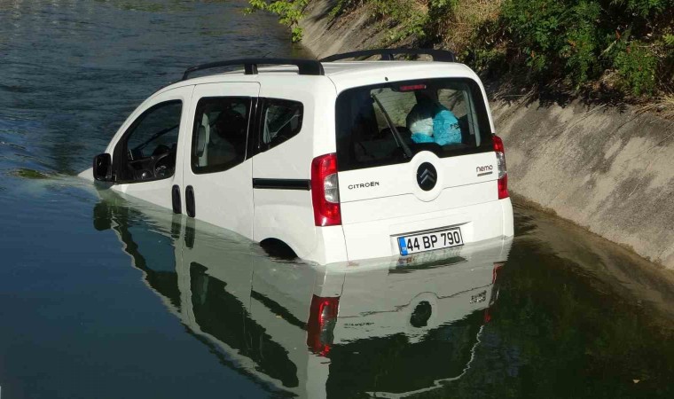 Malatya’da, kontrolden çıkan hafif ticari araç sulama kanalına uçtu. Araç sürücüsü kazadan burnu bile kanamadan kurtuldu.