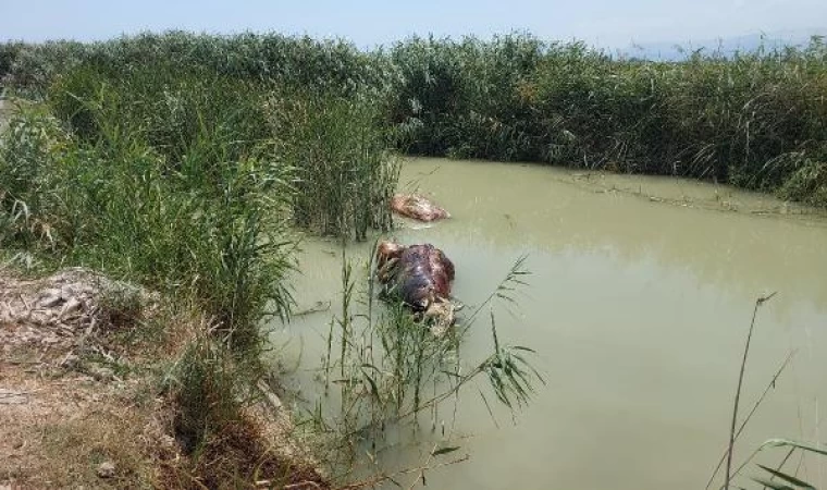 Atike CEYLAN KAÇAR/SİLİFKE (Mersin), (DHA)- MERSİN'in Silifke ilçesinde sulama kanalında ölü 2 büyükbaşa rastlandı. Kokudan rahatsız olan Ali Mavili, "Daha önce de hayvan ölüleri gördük. Kepçe getirip çıkarttık. Sürekli hayvan ölüsü görüyoruz. Buradan balık tutuluyor, önlem alınmasını istiyoruz" dedi.