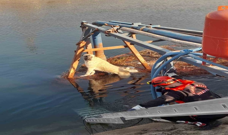Kahramanmaraş’ta sulama kanalına düşen köpek, itfaiyenin çalışması sonucu kurtarıldı.