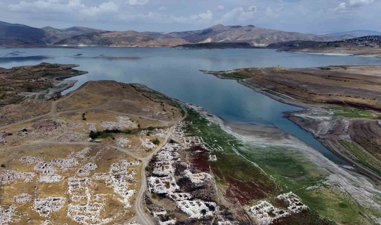 Kayseri’de baraj sularının çekilmesiyle birlikte su altında kalan mahalle gün yüzüne çıktı.