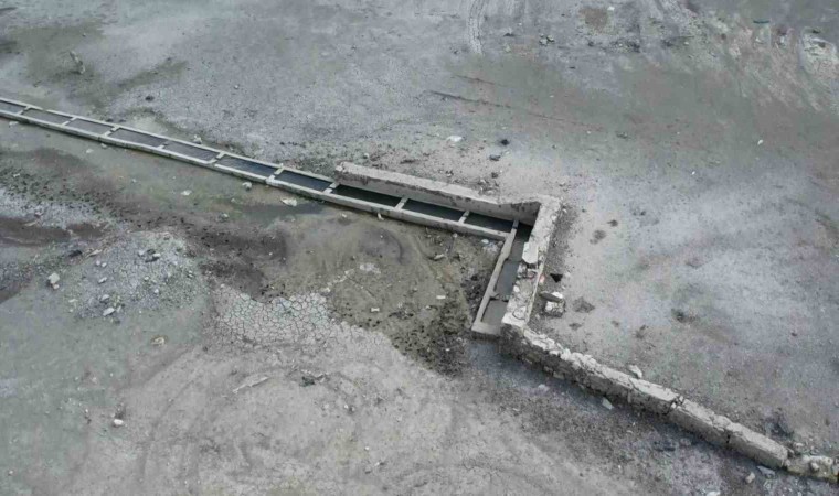 Sazlıdere Barajı’nda suların çekilmesiyle 1950’li yıllarda yapımının tamamlandığı tahmin edilen tarihi çeşme, yalak ve köy yolu ortaya çıktı. Geçmişte hikayelerini dinledikleri yerler köylülerin uğrak noktası olurken, yıllar önce yapılan çeşme ve yalağın bağlandığı kaynaktan hala su akması görenleri şaşkına çevirdi. Ortaya çıkan tarihi yapılar dron ile görüntülendi.