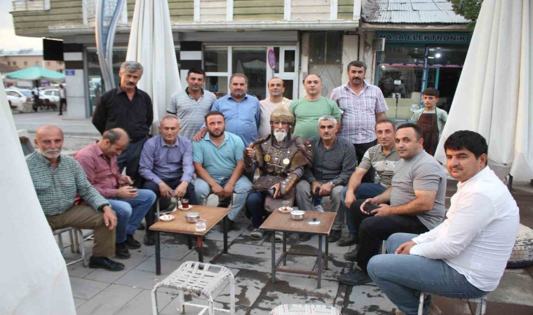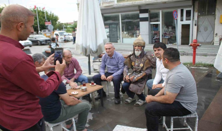 Denizli’nin Tavas ilçesinden Muş’un Malazgirt ilçesine gelen Hacı Hasan Keskin, giydiği Sultan Alparslan kostümüyle büyük ilgi gördü.