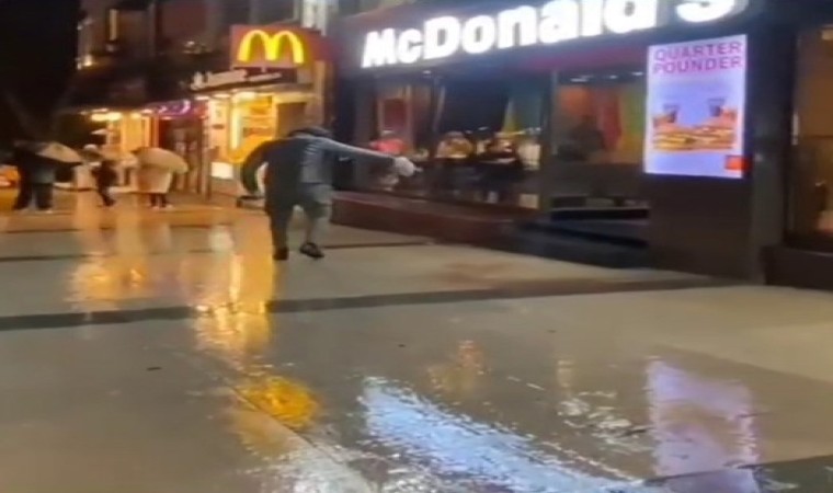 Olay hafta sonu Sultanahmet’te yaşandı. Edinilen bilgiye göre, hayvana ait olduğu öğrenilen kanı pet şişeye dolduran bir grup genç, bir fast food restoranın önüne geldi. İsrail’i protesto etmek için şişedeki kanı restoranın önüne döken grup daha sonra ise Taksim’e geçti. Buradaki bir giyim mağazasının önüne gelen grup, yanlarında getirdikleri kefene sarılı bebek maketlerini oraya bırakarak Taksim’den ayrıldı.
