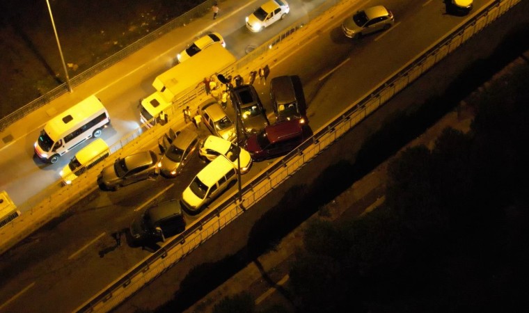 Sultanbeyli’de 15 aracın birbirine girdiği zincirleme kazada 5 kişi yaralandı. Kaza bölgesi havadan görüntülendi