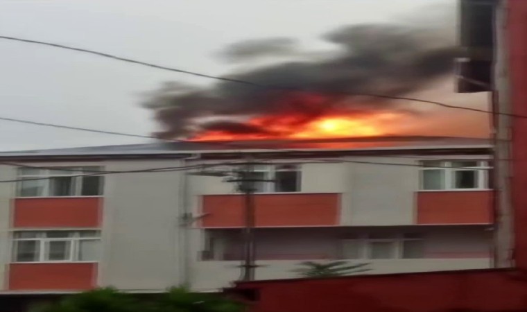 Sultanbeyli’de 3 katlı binanın çatısında yangın çıktı. Alevlerin tüm çatıyı sardığı yangın, itfaiye ekiplerinin müdahalesiyle söndürüldü. Çatının alev alev yandığı anlar cep telefonu kamerasına yansıdı.