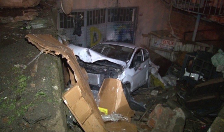 Sultanbeyli’de direksiyon hakimiyetini kaybeden otomobil sürücüsü önce çöp konteynerine çarptı, ardından bir binanın zemin katında yer alan deponun önündeki boşluğa düştü. Kazada bir kişi yaralandı.