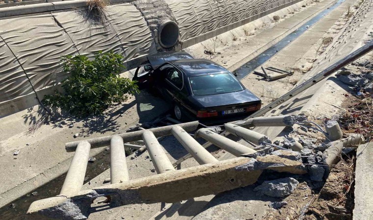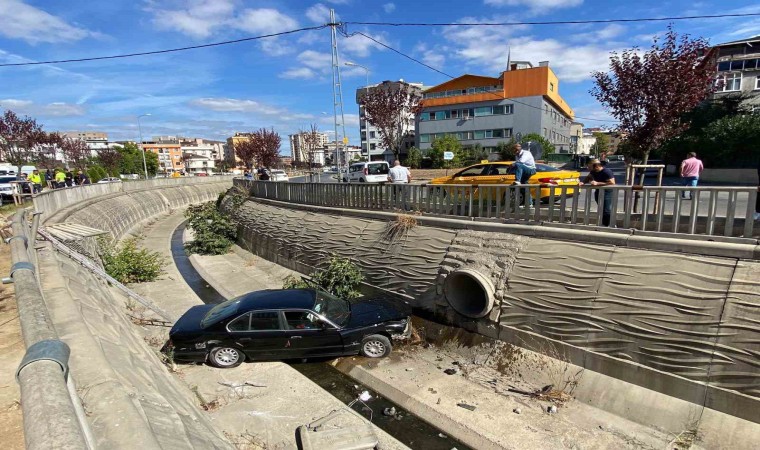 Sultanbeyli’de ehliyetsiz sürücünün kontrolünden çıkan otomobil kanala uçtu. Kazada sürücü burnu bile kanamadan kurtuldu.