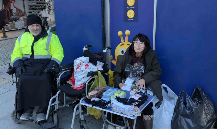 Eşinin de engelli olduğunu anlatan Özdemir, “Çorap, çakmak, ıslak mendil alıyorum. Küçük bir tezgahım var, eşimle birlikte bunları satıyoruz. Eşim de engelli, onda da beyin pili var. Böyle geçiniyoruz. Evde yemek problemimiz var. Sağ olsun belediye üç gün yemek gönderiyor. Değilse parayla almak zorundayız. Evde yemek pişirme şansımız yok” sözlerini kaydetti.