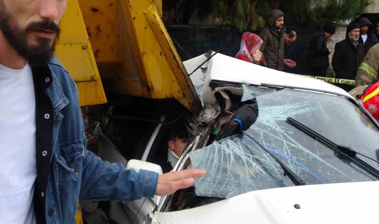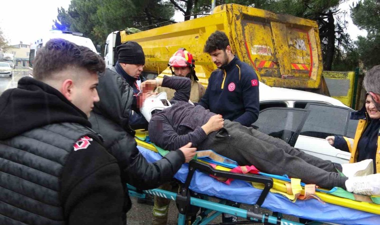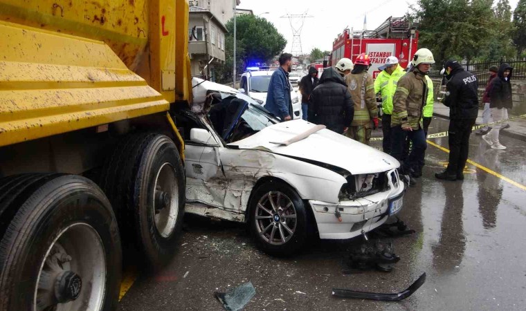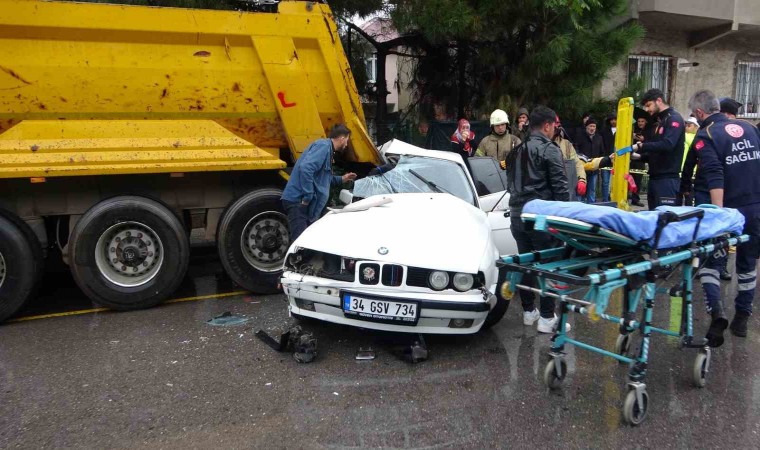 Olay Hasanpaşa Mahallesi’nde dün saat 12.30 sıralarında meydana geldi. İddiaya göre cadde üzerinde seyir halinde bulunan Beytullah Yavuz idaresindeki 34 GSV 734 plakalı BMW marka otomobil, sürücüsünün direksiyon hakimiyetini kaybetmesi sonucu park halinde bulunan 34 NA 1463 plakalı hafriyat kamyonuna arkadan çarptı. Kaza sonucu otomobil içerisinde bulunan Beytullah Yavuz ve Mustafa Barış Yavuz araç içerisinde sıkışarak yaralandı.
