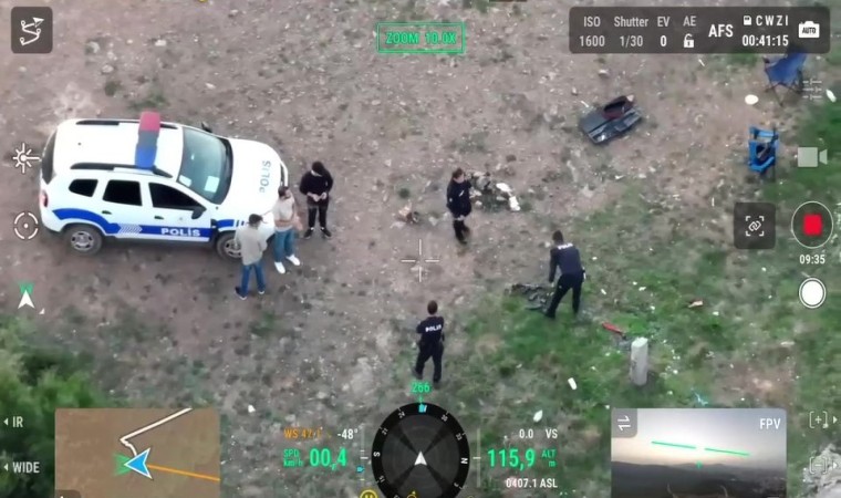 Dron ile ormanlık alanı izleyen polis ekipleri, iki şahsın çevreden buldukları kutu, şişe gibi nesneleri havaya fırlattıkları, tüfekli bir şahsın da havaya fırlatılan nesneleri ateş açarak vurmaya çalıştığı görüldü. Bölgeye intikal eden polisler tarafından, havaya ateş açan O.K. isimli şahıs olayda kullandığı yivsiz tüfek ile beraber polis merkezine götürüldü.