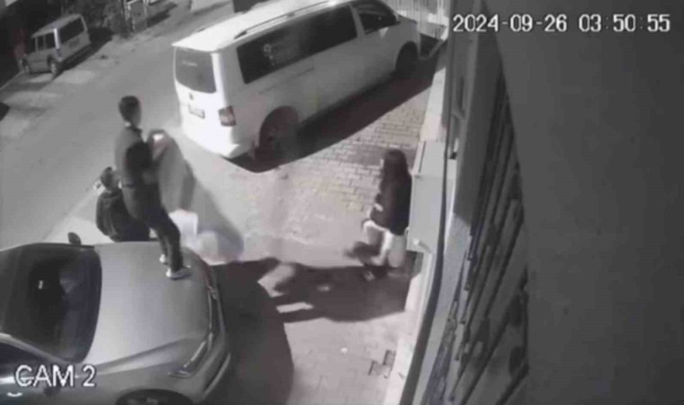 Sultanbeyli’de bir grup, gece saatlerinde bir apartmanın birinci katındaki balkonda asılı olan kıyafetleri çaldı. Hırsızlık anları ise binanın güvenlik kamerasına saniye saniye yansıdı.