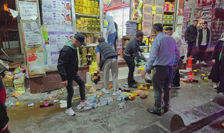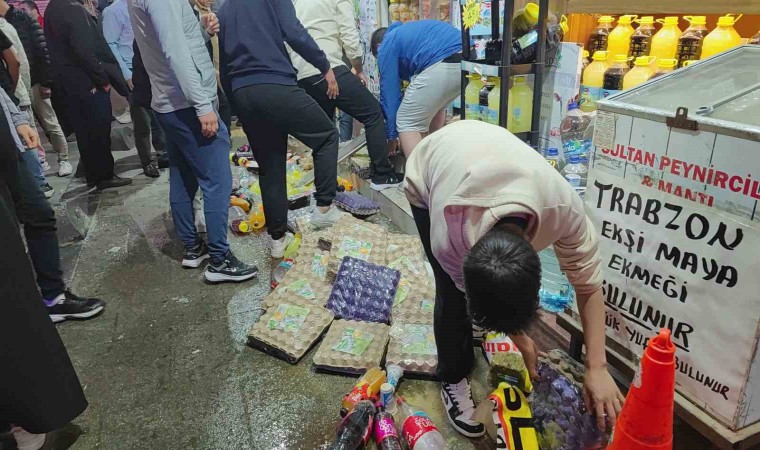 Kaza sonrası işyeri önünde bulunan dolap ve ürünler zarar görüp dağılırken, işyerinde yaklaşık 80 bin TL değerinde zarar olduğu öğrenildi. Olay anını anlatan ve kazadan kıl payı kurtulan Azat Geçer, "Saat 21.30 gibiydi kapıya hava almaya çıkmıştım. Bir de baktım ki anlık yani kafamı çevirdim araç üzerime doğru geliyor. Kendimi şu tarafa attım. O an işte araba dolaba girdi ve bir takım maddi zarar oluştu. Yumurtalar, turşular falan hep yere düştü. Adamın da çenesinde kırık varmış herhalde hastanede tedavi görüyor. Maddi zararımız var onun karşılanmasını istiyoruz" dedi.