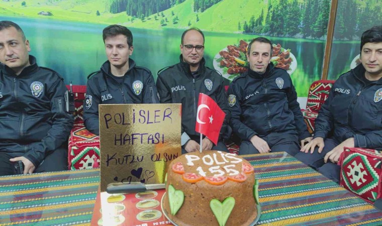 Olay dün akşam saatlerinde Cebeci Mahallesi Atatürk bulvarı üzerinde yaşandı. Osman Durmuş isimli esnaf, 112’yi arayarak asılsız ihbarda bulunduktan sonra arkadaşları ile birlikte ekiplerin gelmesini bekledi. Kısa süre sonra ihbarın yapıldığı adrese gelen ekipler, içeriye girdiklerinde ise alkışlarla karşılanarak üzerinde mumların yandığı ve tamamen çiğköfteden yapılan pasta ile karşılaştı. İlk olarak manzara karşısında şaşıran ekiplere daha sonra ise mumları üfleten esnaf kestikleri pastayı da kendilerine ikram etti. Ardından bir süre sohbet eden polis ekiplerine hazırladığı paketleri hediye eden esnaf, Türk Polis Teşkilatının 179. yıl dönümünü kutlayarak kendilerini tebrik etti.