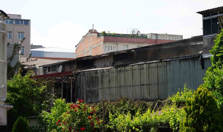 Yangın esnasında yükselen dumanlar gökyüzünü kaplarken, itfaiye ekiplerinin çalışmaları sonrası söndürülen depo havadan görüntülendi.