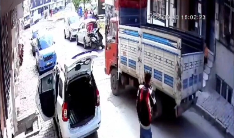 Yanına aldığı bir arkadaşı ile birlikte babasının çalıştığı iş yerine ait kamyoneti kaçıran A.E. yaklaşık 10 araca çarparak zarar verirken, o anlar güvenlik kamerasına yansıdı. Görüntülerde çocukların kaçırdıkları kamyonetle bir sokağa girdikleri, sokakta bulunan vatandaşlar ve çocukların sağa sola kaçıştıkları, kamyoneti kaçıran çocukların ise araçlara çarparak kaçtıkları görülüyor.