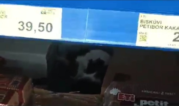 Sultangazi’de bulunan BİM markete giren bir kedi rafların arasında dolaşarak bisküvi ambalajlarını tırmaladı. Gördüğü manzara karşısında şaşkına dönen müşteri ise o anları kayda alıp "Çalışanlar hiç bir şekilde müdahale etmiyor" diyerek tepki gösterdi.