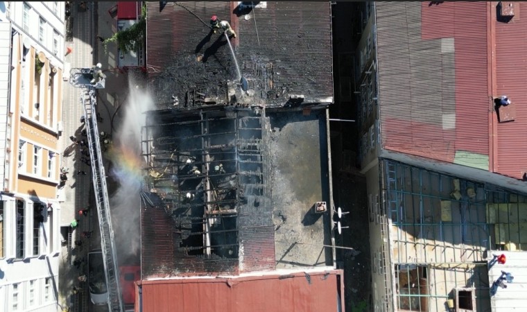 Öte yandan, itfaiye ekiplerinin yangını söndürme çalışmaları havadan görüntülendi.