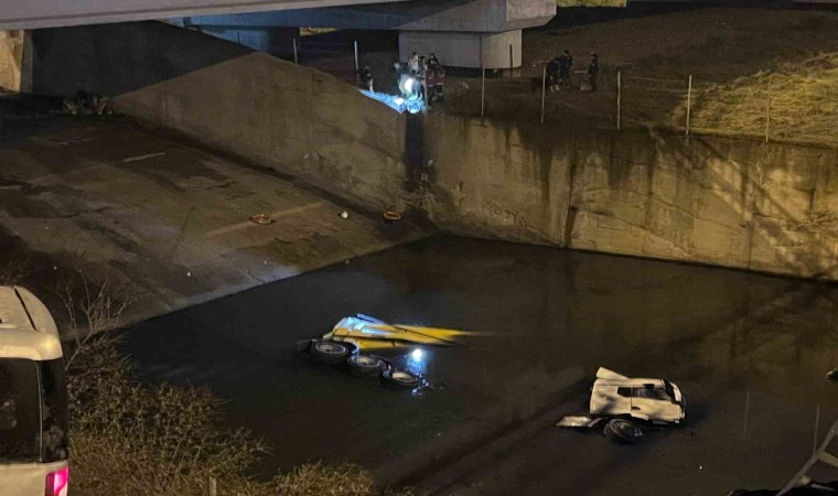 Olay, saat 22.00 İstanbul Sultangazi Kuzey Marmara Otoyolu Cebeci Tüneli çıkışı Ankara istikametinde meydana geldi. İddiaya göre seyir halindeki 34 MCM 557 plakalı hafif ticari araç ile hafriyat kamyonu kazaya karıştı. Olayda hafif ticari araç bariyere çarparak yol kenarındaki boş alana çıkarken, hafriyat kamyonu ise Alibey Deresi’ne uçtu. İhbar üzerine olay yerine çok sayıda itfaiye, polis ve sağlık ekipleri sevk edildi. Hafif ticari araç içerisindeki yaralı 2 kişi sağlık ekipleri tarafından ambulansla hastaneye kaldırıldı. İtfaiye ekipleri, hafriyat kamyonu sürücüsünü kurtarmak için çalışma başlattı. Yapılan çalışmalar sonucunda kamyon sürücüsü, SAK itfaiye ekiplerince kurtarıldı. Yaralı sürücü, ambulansla hastaneye kaldırıldı. Ekiplerin, dereye düşen hafriyat kamyonunu kaldırma çalışmaları devam ediyor.