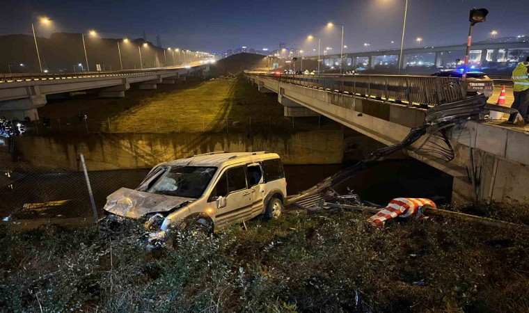 İstanbul Sultangazi Kuzey Marmara Otoyolu Cebeci Tüneli çıkışında hafriyat kamyonu ile hafif ticari araç kazaya karıştı. Yaşanan kazada hafif ticari araç bariyerlere çarparak yol kenarındaki boş alana girerken, hafriyat kamyonu ise dereye uçtu. Olayda yaralanan 3 kişi ambulansla hastaneye kaldırıldı.