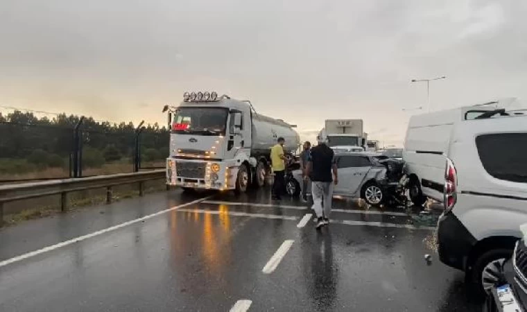 Kaza, 15.30 sıralarında Habipler Mahallesi, Eski Edirne Asfaltı Caddesi üzerinde meydana geldi. İddiaya göre, 34 JN 2030 plakalı hafriyat kamyonu şoförü, yağmur nedeniyle kayganlaşan yolda duramayarak kırmızı ışıkta bekleyen 6 araca çarptı. Kazada 3 kişi bulundukları araçta sıkıştı. İhbar üzerine olay yerine itfaiye, sağlık ve polis ekibi sevk edildi. İtfaiye ekipleri tarafından kurtarılan 3 kişi, sağlık ekipleri tarafından olay yerinde yapılan ilk müdahalenin ardından ambulanslarla hastaneye kaldırıldı. Kaza nedeniyle caddede trafik yoğunluğu oluştu.(DHA)