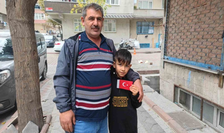 Sultangazi’de sokakta oynayan 8 yaşındaki çocuk, bir otomobilin altına düşen Türk bayrağını kaldırıp bir aracın üzerine bıraktı. O anlar cep telefonu kamerasına yansıdı.