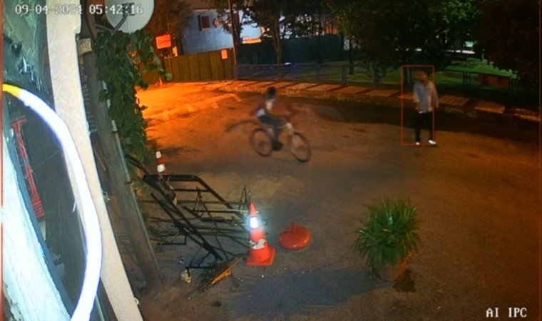 Öte yandan hırsızlık anı güvenlik kameraları tarafından görüntülendi. Sokağı kolaçan eden bir şüphelinin, önce internet kablolarını kestiği ardından bisiklet çaldığı görülüyor.