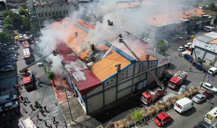 Sultangazi Sanko Sanayi Sitesi’nin içinde bulunan oto yedek parça dükkanının çatı katında bilinmeyen bir nedenle yangın çıktı. Alevler çevresindeki bir dükkana ve depoya sıçradı. İtfaiye ekiplerinin çalışması havadan görüntülendi.