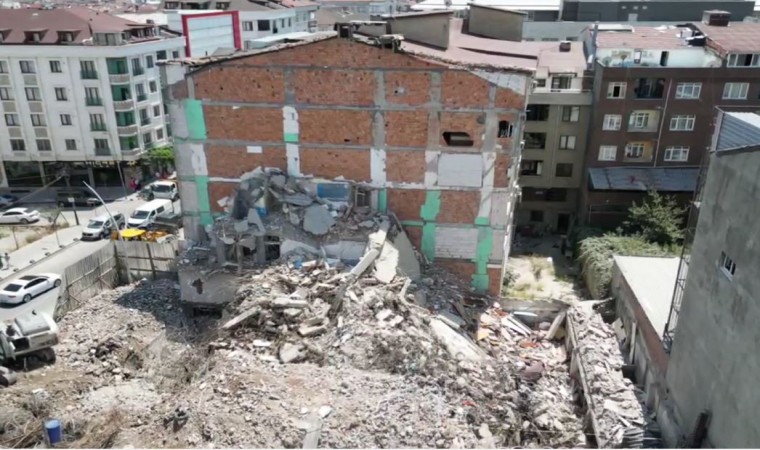 Sultangazi ‘de yıkım çalışması sırasın da hasar gören 6 katlı bina havadan görüntülendi. Duvarı yıkılan Ahmet Hasan İlbasan, “Neye uğradığımıza şaşırdık açıkçası. Eşyalarımız hasar gördü. Bebeğimizin beşiğinin üzerine büyük bir beton kütlesi düştü” dedi.