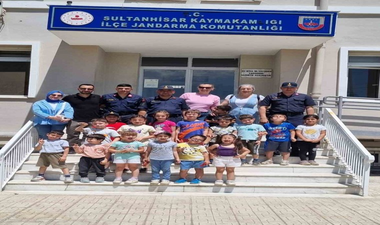 Aydın’ın Sultanhisar ilçesindeki Atça Ali Sönmez İlkokulu ana sınıfında eğitim gören öğrenciler, Sultanhisar İlçe Jandarma Komutanlığı’nı ziyaret etti.