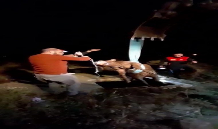 Bireylül Mahallesi Bestami Sokak’ta Bekir Kılıç’a ait ineğin gübre çukuruna düşerek mahsur kaldığının bildirilmesi üzerine itfaiye ekipleri harekete geçti. Olay yerine çağrılan Fen İşleri Müdürlüğü ekipleri bölgedeki bir biyogaz tesisi çalışanlarının desteğiyle çukuru boşalttı. Ardından çukura giren itfaiyeci ineği halata bağladı. İş makinesinin desteğiyle çıkartılan inek sahibine teslim edildi.