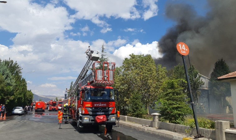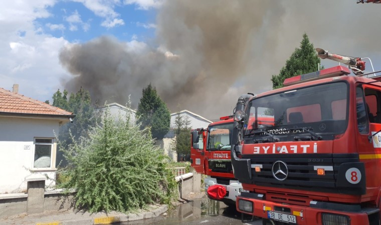 Kayseri OSB’de bir sünger fabrikasında yangın çıktı. Ekipler, yangına müdahale ediyor.