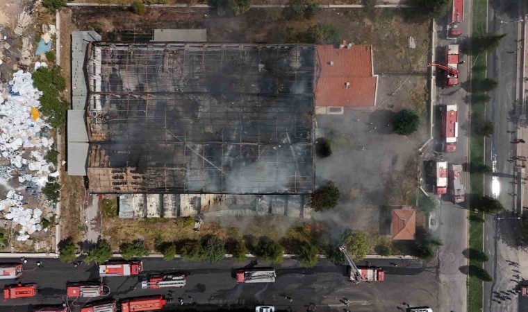 Kayseri OSB’de bir sünger fabrikasında çıkan yangın havadan görüntülendi.