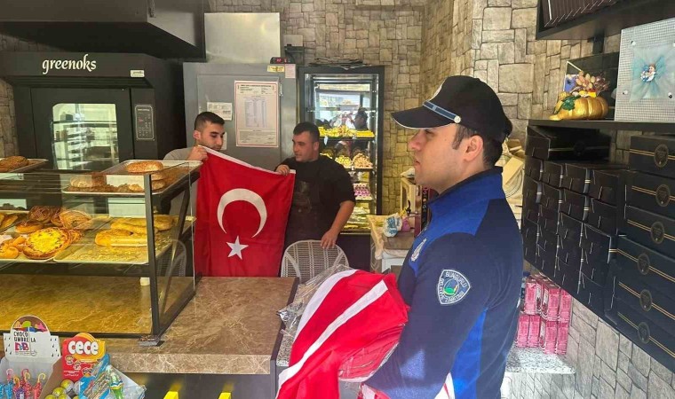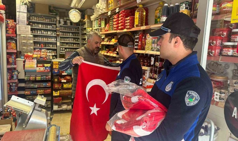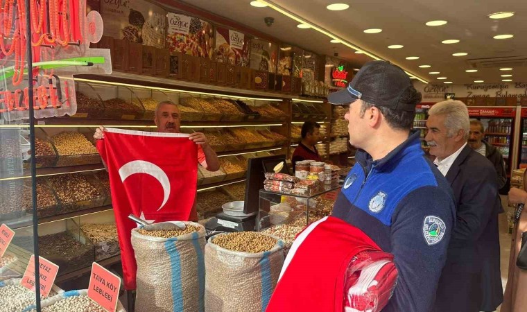 İlçenin işlek noktalarında esnaf ve vatandaşa Türk bayrağı hediye eden ekipler, 29 Ekim günü tüm vatandaşları ev ve iş yerlerini Türk bayrağı ile donatmaya davet etti.