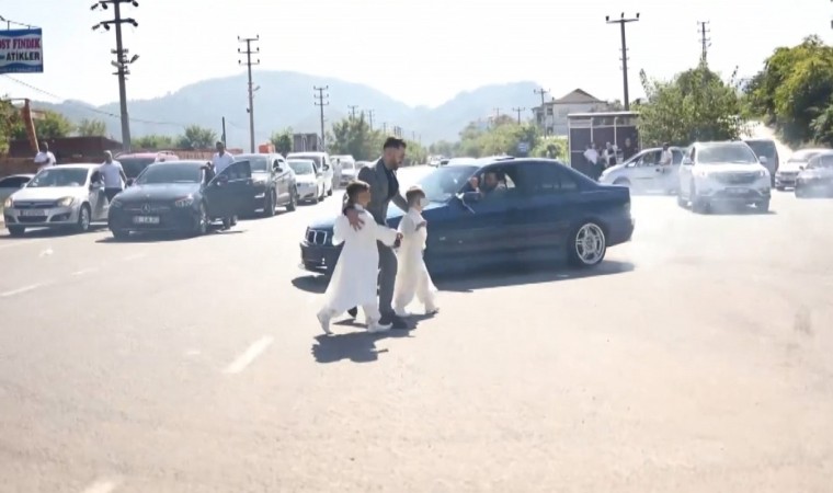 Öte dirft anları, cep telefonu kamerası ile kaydedildi. Kaydedilen görüntülerde drift yapan aracın etrafında yaşı küçük 2 sünnet çocuğunun olduğu görüldü, araç içerisinde görüntüleri çeken kişinin ’polis geliyor kaç’ dediği duyuldu.