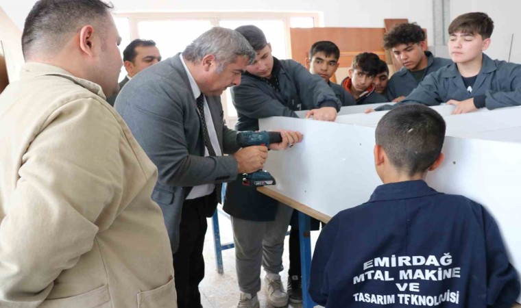 Afyonkarahisar İl Milli Eğitim Müdürü Miraç Sünnetci, Emirdağ Mesleki ve Teknik Anadolu Lisesi’nde atölye derslerine katılarak öğrencilerin çalışmalarına eşlik etti.