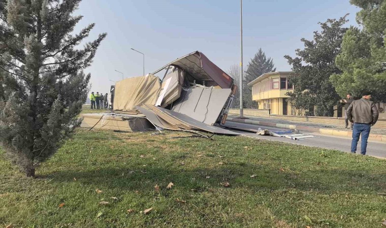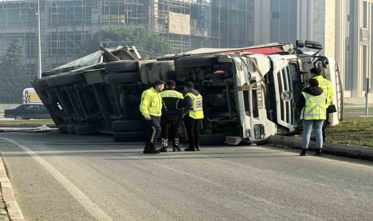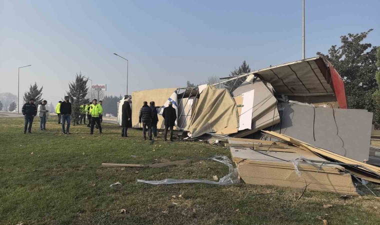 Bursa’nın İnegöl ilçesinde meydana gelen kazada, kontrolden çıkan sunta yüklü tır devrildi. Yol ulaşıma kapanırken sürücü kazayı yaralanmadan atlattı.