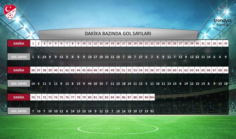 2023-2024 sezonu sona eren Trendyol Süper Lig’in istatistik bilgileri yayımlandı. Türkiye Futbol Federasyonu (TFF) Futbol Yönetim Sistemleri Bölümü’nün maç hakem raporlarına dayanarak hazırladığı istatistiklerde; en çok süre alan oyuncu, galibiyet sayıları, gol ve kart sayıları, oyuncu değişiklik sayıları gibi veriler yer aldı.