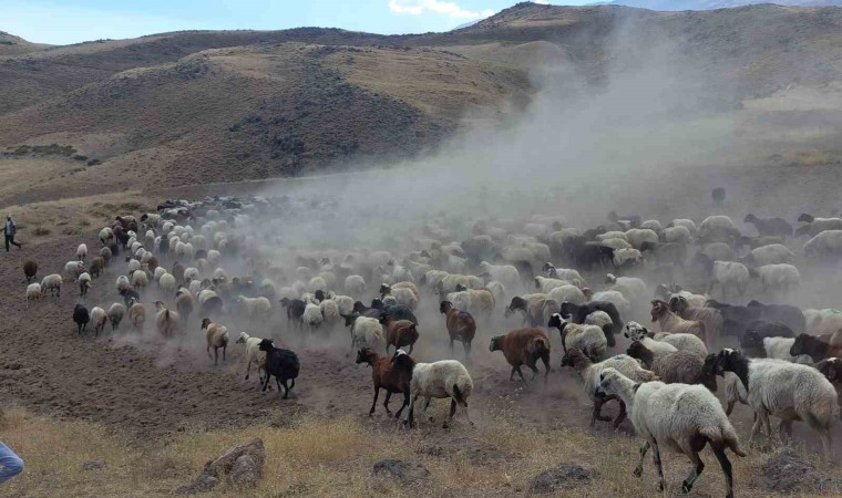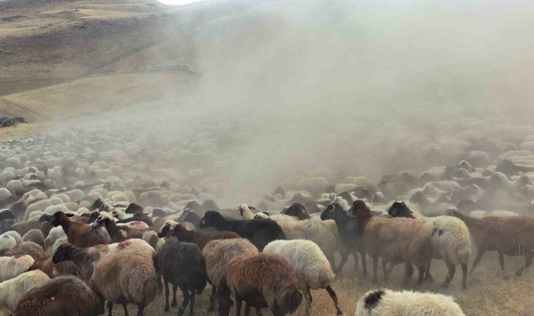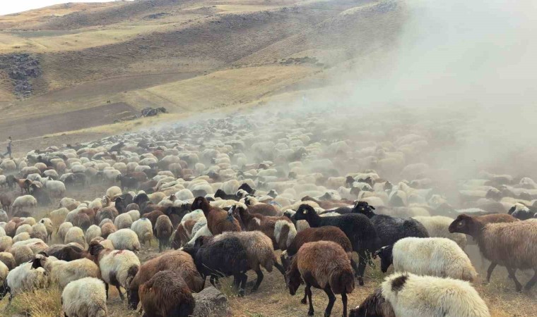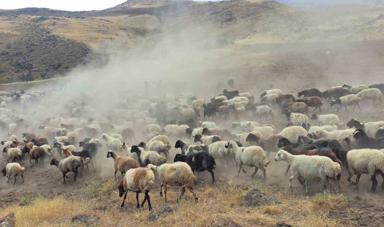 BİTLİS (İHA) – Bitlis’in Adilcevaz ilçesi sınırlarında bulunan Süphan Dağı eteklerinde küçükbaş hayvan sürüsünün meraya zorlu ve tozlu yolculuğu devam ediyor.