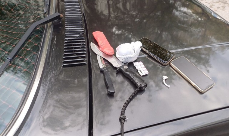 Edinilen bilgilere göre, Bahar Caddesi üzerinde devriye görevi yapan polis ekipleri şüphelendikleri Tofaş marka bir aracı durdurmak istedi. Dur ihtarına uymayan sürücü A.İ.B. kaçmaya başladı. Polis ekiplerinin sıkı takibi sonucu yakalanan araçta yapılan incelemede iki ayrı suçtan arama kaydı bulunan sürücü A.İ.B. gözaltına alınırken, araçta uyuşturucu madde ile iki adet bıçak ele geçirildi. Otomobildeki ismi öğrenilemeyen diğer kişi de A.İ.B. ile birlikte polis ekipleri tarafından gözaltına alındı.