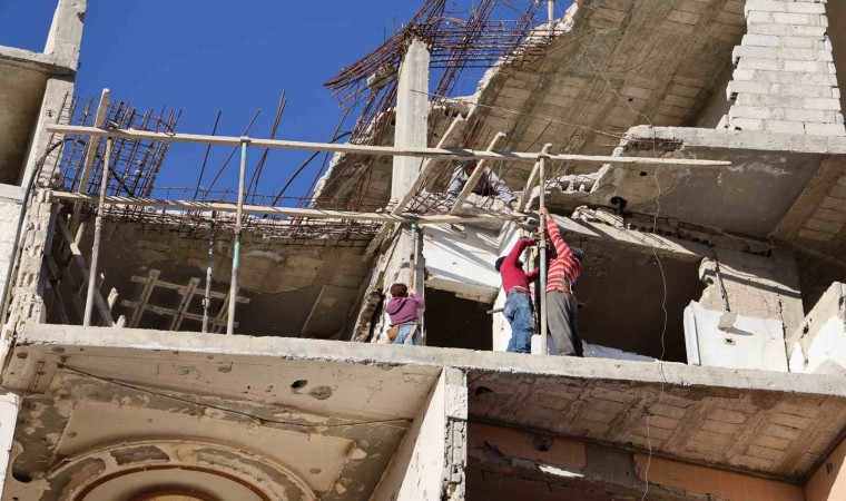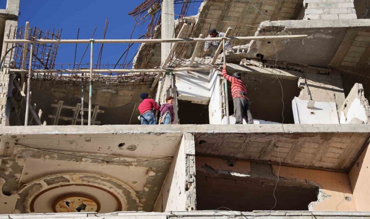 Suriye’de Heyet Tahrir Şam (HTŞ) liderliğindeki muhalif grupların Beşar Esad rejimini devirmesiyle yurtlarına geri dönen Suriyeliler, rejimin bombaladığı evlerinde restorasyon çalışmalarına başladı.