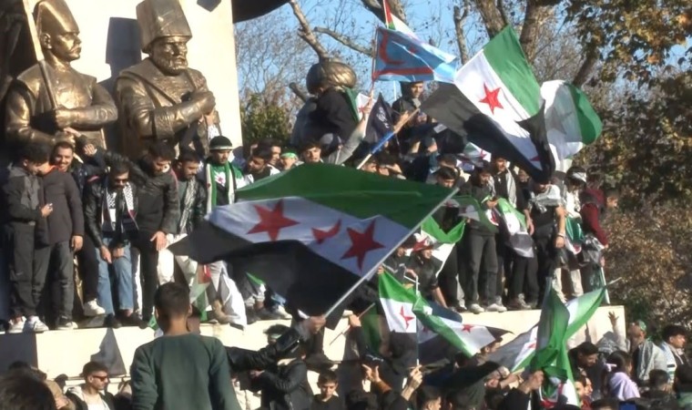 Suriye’de muhaliflerin Şam’ı ele geçirmesi İstanbul’da yaşayan Suriyeliler tarafından kutlanmaya devam ediyor. Sabah namazından itibaren Fatih Camii’nde toplanan Suriyeliler, sevinç gösterilerinde bulundu. 7’den 70’e binlerce Suriyeli, Fatih Camii’nde Türkiye ve Suriye bayrakları ile Esed’in gidişini kutladı. Öte yandan Suriyeli kalabalık, Fatih Camii’nden Saraçhane Parkına kadar yürüdü. Saraçhane’de toplanan kalabalık, Esad’ın devrilmesiyle ilgili sloganlar attı. Kutlamaların akşam saatlerine kadar süreceği de öğrenildi.
