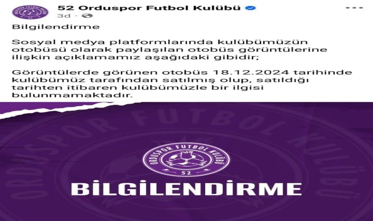Konuya ilişkin kulüpten yapılan açıklamada ise otobüsün 18 Aralık 2024 tarihinde satıldığı ve kulüp ile ilişkisinin kalmadığı dile getirildi.