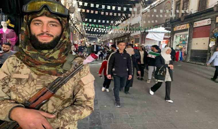 Şam’ın işlek çarşılarında güvenliği sağlayan askerler, silahlarının namlularına taktıkları güllerle yeni döneme ilişkin anlamlı mesajlar vererek, ülkede artık savaşın değil barışın hakim olacağını belirtti.