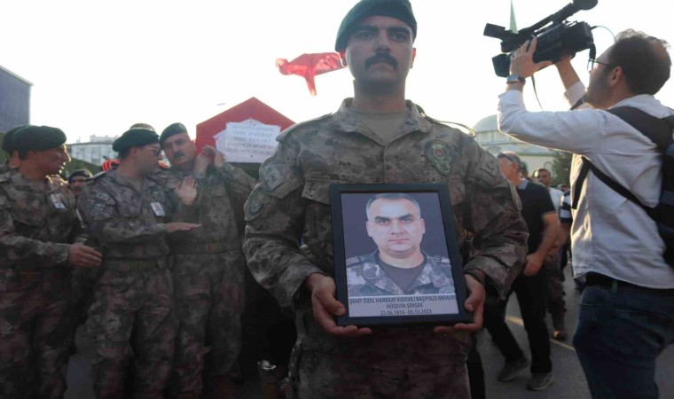 Tel Rıfat bölgesinde teröristlerin hain saldırısında şehit düşen İzmirli Özel Harekat Polisi Hüseyin Şimşek, gözyaşlarıyla son yolculuğuna uğurlandı. Şehidin Özel Harekat Şube Müdürlüğünde görevli mesai arkadaşları, şehidin tabutunu omuzladı ve top arabasına kadar tekbirlerle taşıdı.