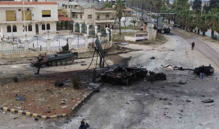 Suriye’de muhalif grupların Esed rejimine bağlı güçlerle çatışmasının ardından kontrolü sağladığı Hama’da sokaklarda terk edilmiş askeri araçlar kaldı. Çatışmaların yoğun geçtiği bölgede rejim güçleri ve muhalif grupların çatışmalarında hasar gören tanklar ise yanmış halde sokaklarda kaldırılmayı bekliyor. Çatışmalarda öldürülen rejim askerlerinin cesetleri ise, muhalif gruplar tarafından kaldırıldığı öğrenildi. Hama’daki son durum çatışmaların etkilerini gözler önüne seriyor.