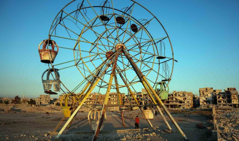Suriye’nin Yermuk Mülteci Kampı’nda binaların yanı sıra oyun alanları da yıllarca süren çatışmaların izlerini taşıyor. Muhaliflerin yönetime gelmesiyle normalleşme sürecine giren ülkede çocuklar, Esad rejiminde bombalanarak harabeye dönen lunaparkta oyun oynuyor. Yıkıntılar arasındaki dönme dolapta eğlenen çocuklar, tüm zorluklara rağmen umutlarını kaybetmiyor. Hasarlı dönme dolaba binen çocuklar, kabinleri çevirmeye çalışırken her şeye rağmen gülümsemeye devam ediyor. Esad rejiminde yoğun saldırılar altında yaşam mücadelesi veren çocuklar, hayata yeniden tutuluyor.