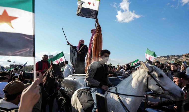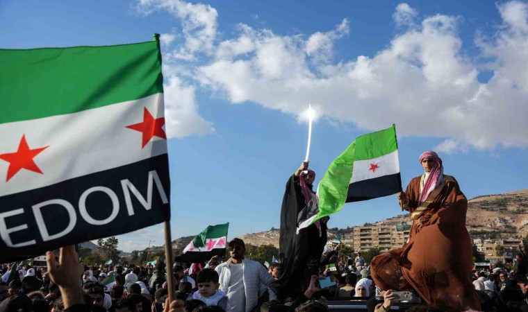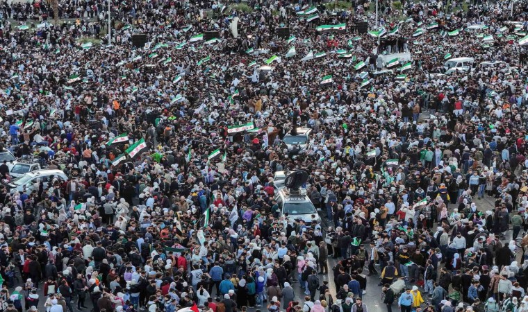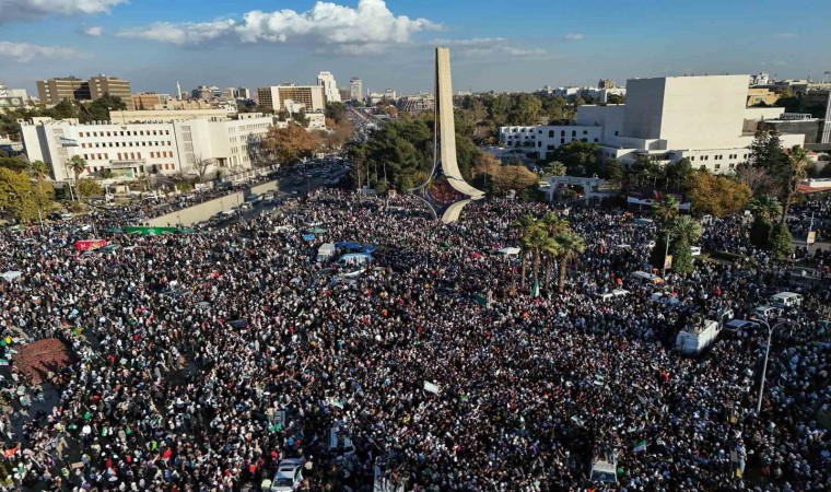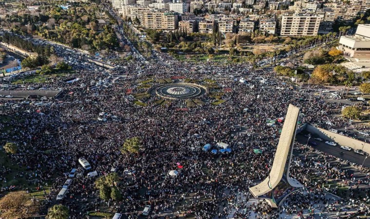 Suriyeliler, cuma namazının ardından başkent Şam’ın simgesi Emevi Meydanı’na akın ederken, meydan hıncahınç doldu.