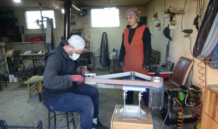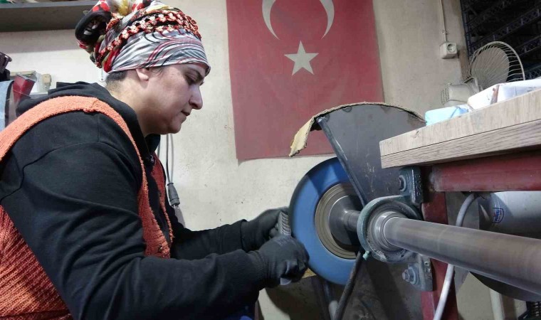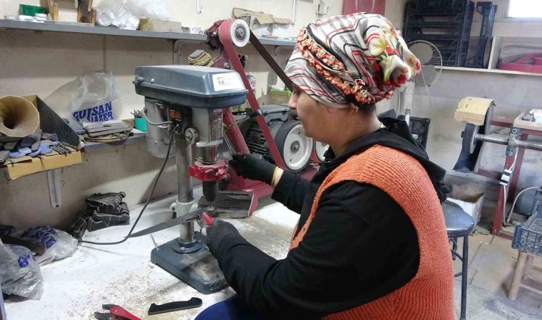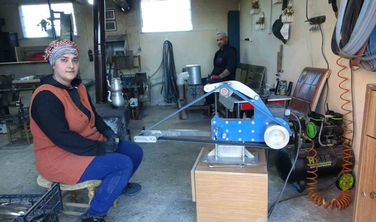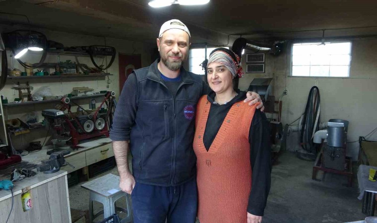 Bıçak üretimine ilk kez başlamak istediği zamanlarda eşinin karşı çıktığını belirten Şennur Cengiz, “Eşim evimizin yanındaki atölyede çalışıyordu. Bende öğlelerde ona yemek getiriyordum. Baktım zorlanıyor, tek başına sıkılıyor. Bende biraz meraklıyımdır. Yanında otursam, şöyle yapsam dedim. Eşim ilkten biraz sıcak bakmadı. Onu dinlemedim. Yaptığı işleri gözlemledim, izledim. Sonra kendime güvendiğim için yapabilirim dedim. Eşimin karşısına oturdum yapma diye diretti ama ben yapacağım dedim. Öyle başladım. Yaklaşık 5 yıldır devam ediyoruz. Yanlış yaptığım zaman kızdı ama daha sonra affettirdim. Evde de birbirimize yardımcı olmaya çalışıyoruz. Nasıl ben ona burada yardım ediyorsam tabi o da bana yardımcı olmaya çalışıyor. Yemek yapmak için değil yemek için yardımcı oluyor. Bu işe ilk başladığımda zor gelmişti. Biz Karadeniz kadını aklına bir şey koyduysa üstesinden gelir. Bıçağın elde rahat oturuşuna dikkat etmek gerekiyor. Daha sonra keskinliğine dikkat etmesi lazım. Mağazalardan almak istiyorlarsa bıçağın keskinliğini denesinler. Eğer bıçağın uzun ömürlü olmasını istiyorsanız bulaşık makinesine atmayın. Kullandıktan sonra ılık bir su ile yıkayıp kurulayın” diye konuştu.