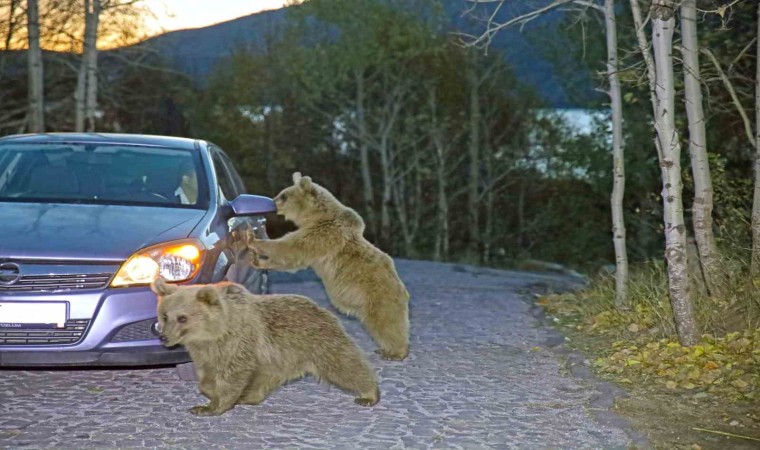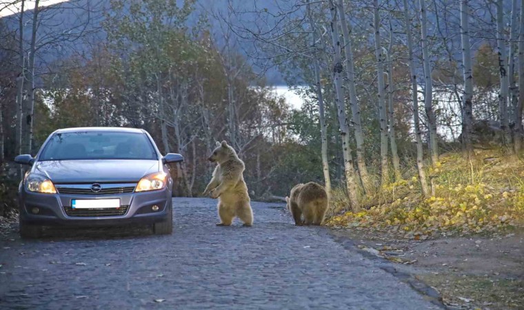 Bitlis’in Ahlat, Güroymak ve Tatvan ilçe sınırları içinde bulunan Nemrut Krater Gölü civarında doğal yaşamlarını sürdüren ayılar aç kalınca araçlara saldırmaya başladı.